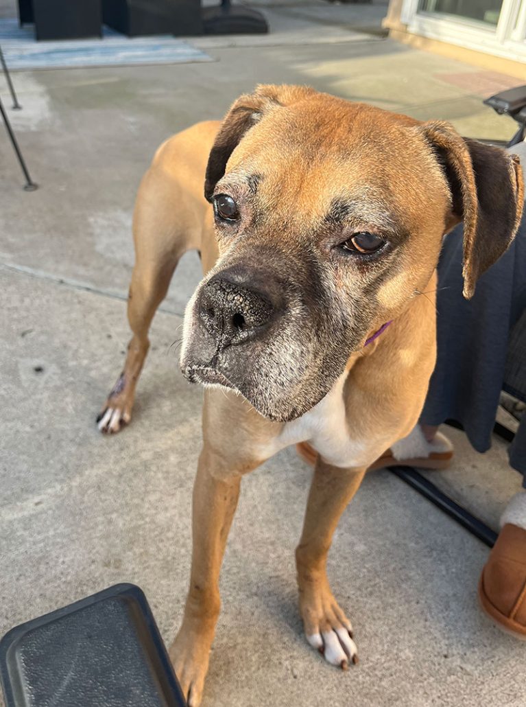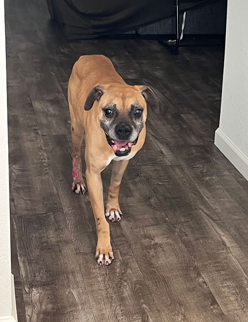 Hi world! My name is Bock, and I’m a reserved gentleman who needs a little more time to get to know you. Although my past may be unknown, my future is waiting for a family that understands my need for time. With time, you will see me open up and become a dog who feels safe in his surroundings. My crate is my safe space, but eventually I will move to a dog bed near the couch. Then, I will show you my popcorn wiggles and my bow plays (I promise you, they are in there, because my foster Mom has seen them). Loud noises startle me, so I’d best in a home with older kids or no kids at all.