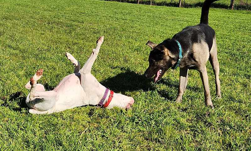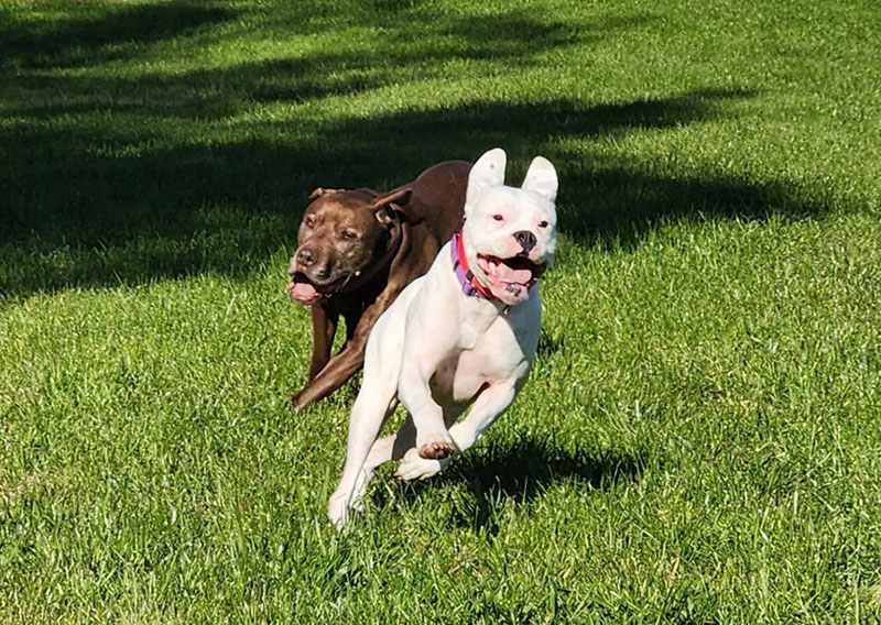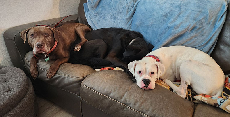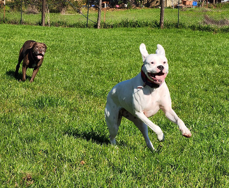 After an introduction protocol, Frankie has enjoyed playing with a variety of dogs in classic boxer party animal fashion. Frankie loves snuggling, is easily motivated by treats, and has generally good house manners (if potty trained, doesn’t chew things up). Frankie has a lovely blend of energy to play and explore but calms down wonderfully during down time.