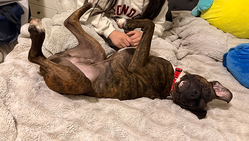 An ideal home for Kalifa would be one that can match his high energy and playful spirit while also giving him time to relax and feel secure. Kalifa is a very curious boy. He is a fun and happy dog who LOVES his toys, enjoys chasing a ball or playing fetch, and will absolutely make you laugh with his goofy personality. After playtime, he’s just as happy to cuddle on the couch or stretch out in a sunny spot for a nap.