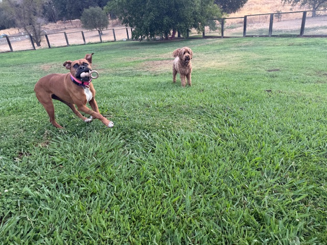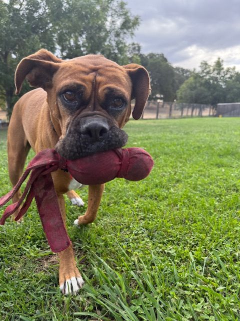 She’s not looking for long neighborhood walks, but she does enjoy romping around the yard and soaking up fresh air at her own pace.