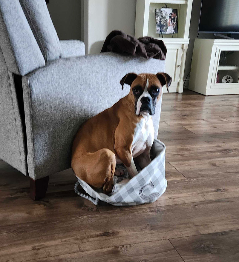 Meet Taylor (her friends call her Tay-Tay) the tiny boxer! This sweet girl has everything you love in a boxer all wrapped up in a pint-sized package. She’s affectionate, loyal, social and good with kids. She loves being around her people and would do best with a family who doesn’t leave her for too long, or better yet, is willing to take her along on their adventures.