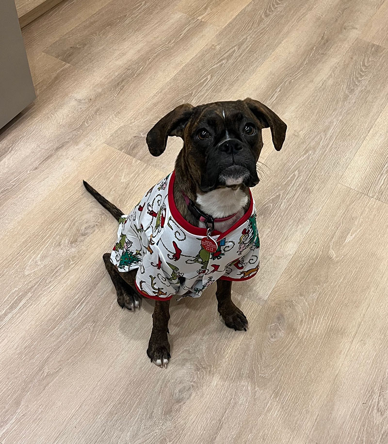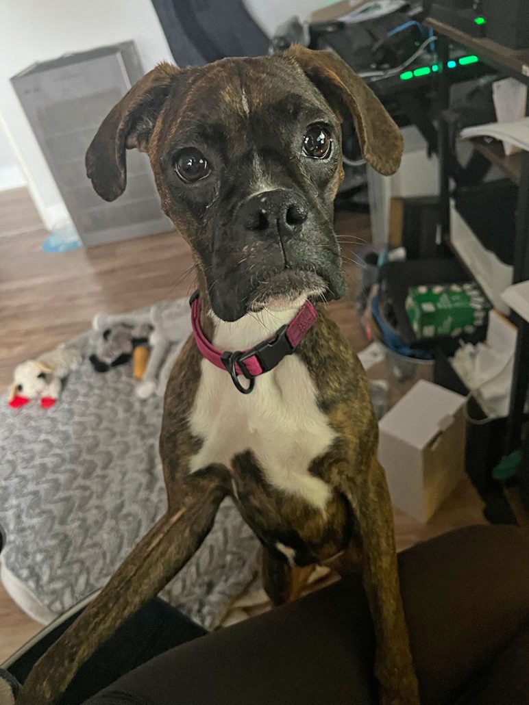 Twixie is a very excited, affectionate girl still learning what it’s like to be her true self. She opens up more every day and lets her true goofy personality shine through. She loves a good play session with her squeaky toys tossing them around and chasing them. She enjoys a good session of playing fetch outside and getting some good zoomies out. She’s lightning fast! When she’s done playing, she loves to snuggle in and take a good long nap. While she can be the crazy, energetic boxer, she also has a huge lazy-dog side to her. She’s still learning common commands like sit and stay, but is eager to please. She will thrive in a home that is attentive to her needs and shows her willingness to work and grow with her.