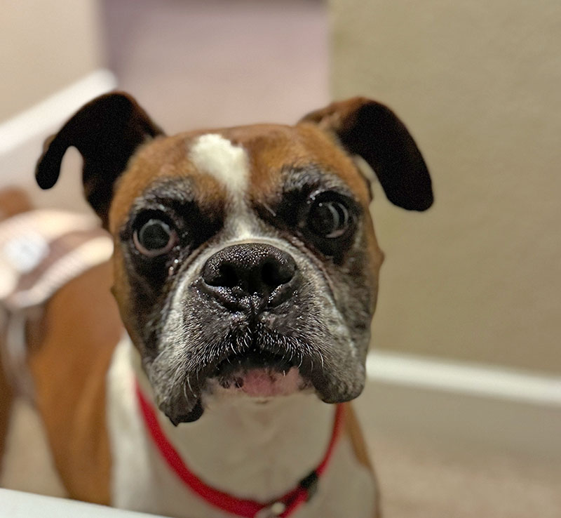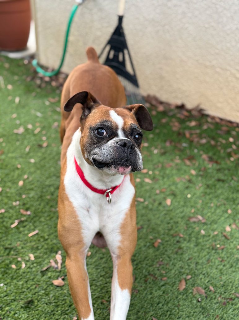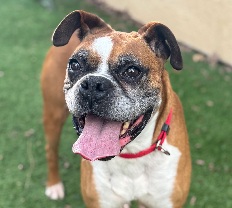 Like many boxers, Ziggy has a little independent streak and a sense of humor, meaning, sometimes he “forgets” to listen, but mention a treat and he’s all ears! He’s very food motivated, which makes continued training both fun and rewarding.