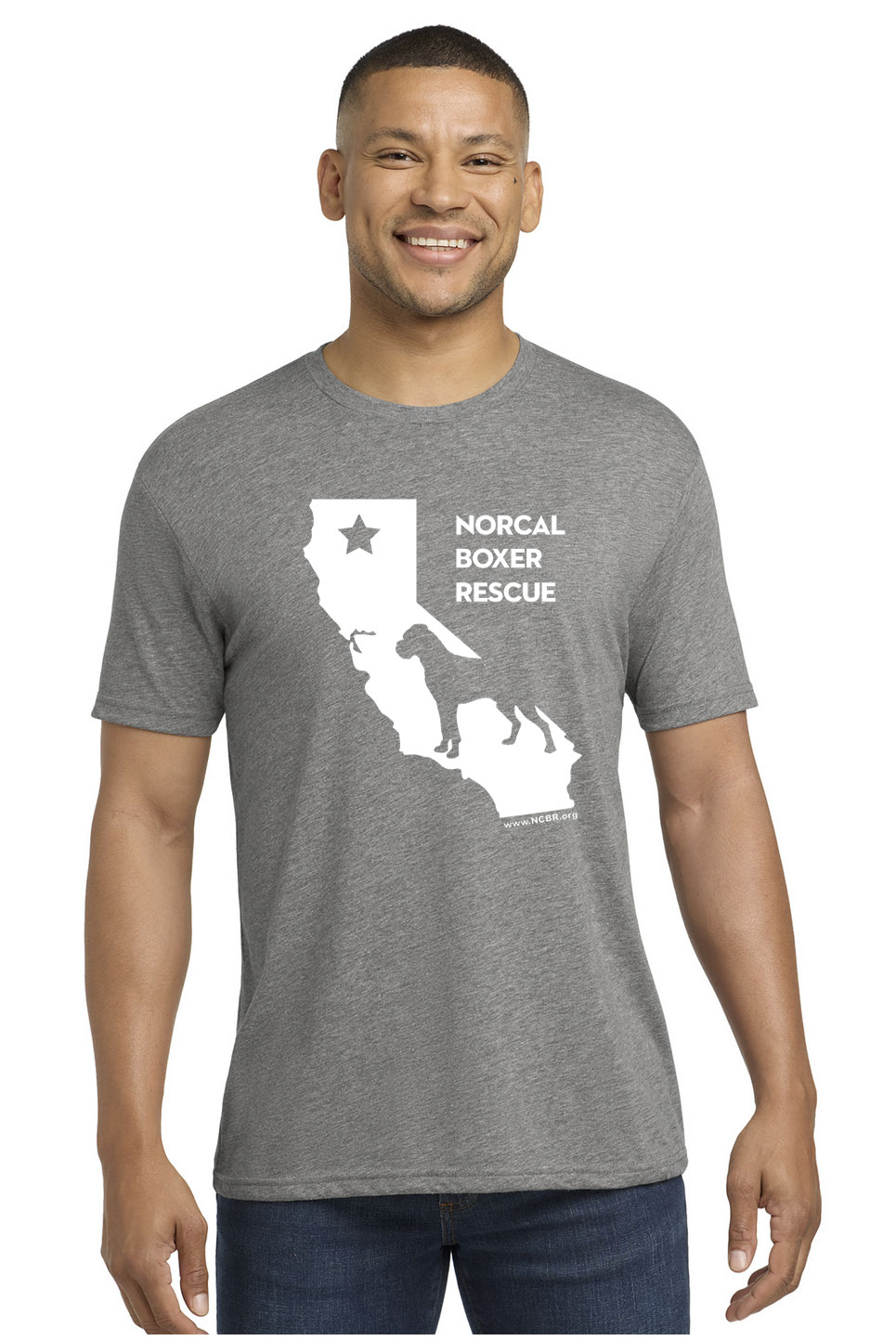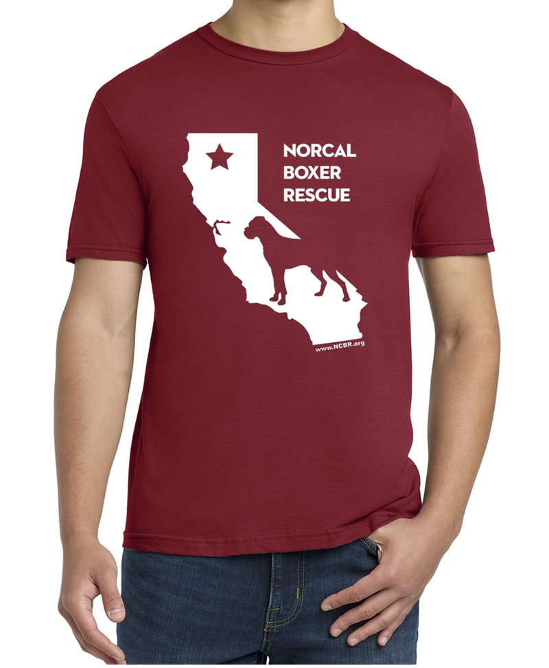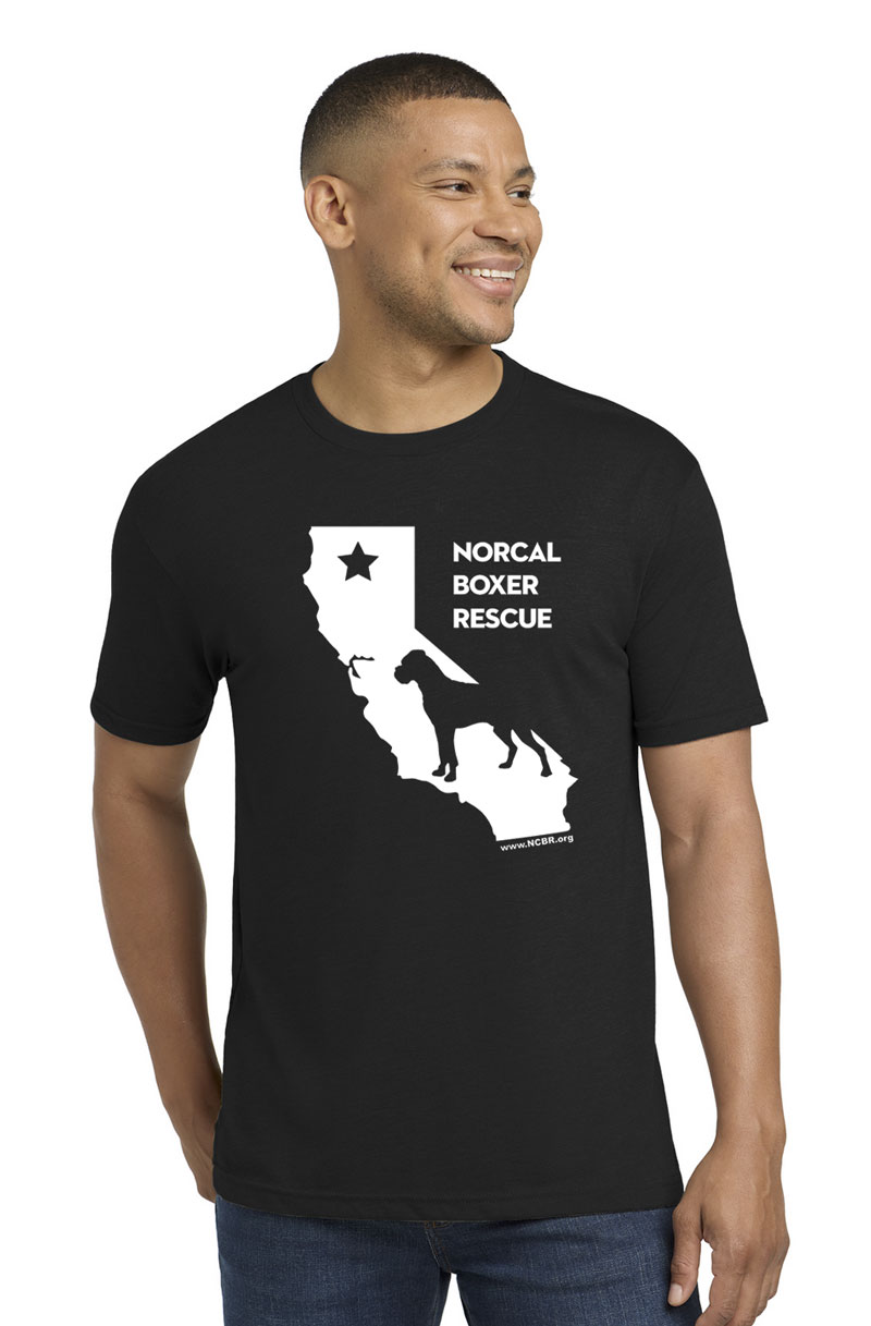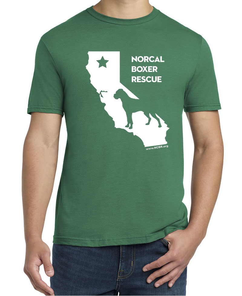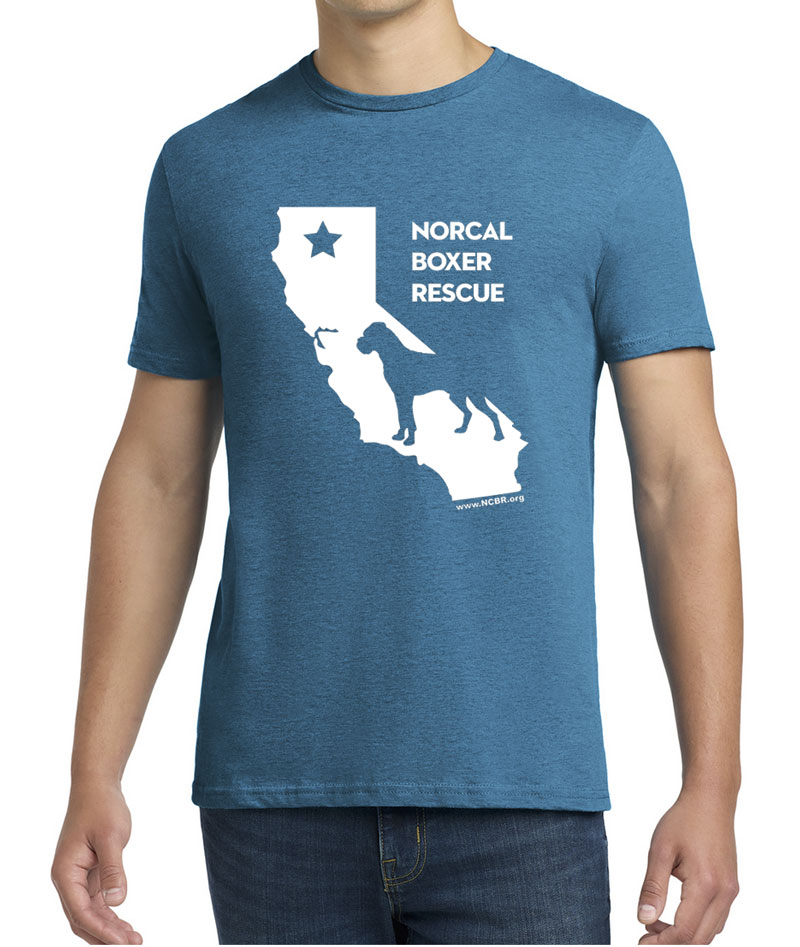 Show off your love for NorCal Boxer Rescue in our NCBR California tee! Available in White, Kelly Green, Cherry Red, Antique Sapphire, Heather Grey or Black